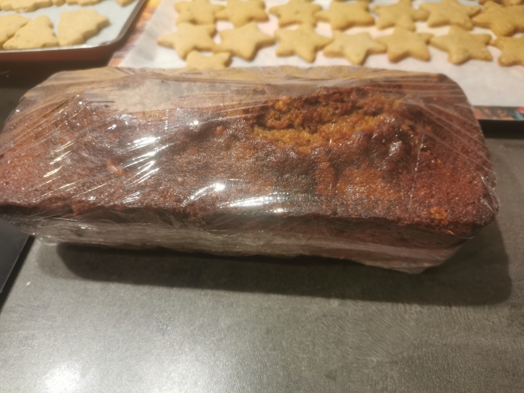 préparation : pré-chauffer le four à 150 degrés. Faire fondre le beurre mélanger au miel, épices, lait, farine, levure et oranges, noix, chocolat. Mettre dans deux moules à cake beurrés ou avec papier cuisson. Enfourner pour 50 minutes. Vérifier la cuisson en piquant un couteau qui doit ressortir sec.