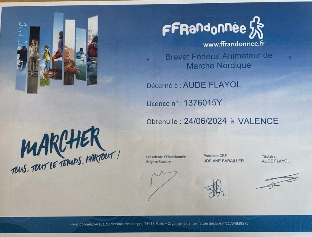 2024 : Brevet fédéral d’animateur de marche nordique, Fédération Française de Randonnée